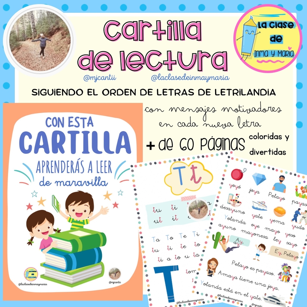 📖 CARTILLA DE LECTURA 📖 Cartilla de lectura 📖 atractiva, divertida, con mucho colorido y con mensajes motivadores en cada nueva letra. El orden de presentación de las letras es el mismo que emplea letrilandia, sirviendo asà perfectamente de material extra. Contiene más de 60 páginas listas para fotocopiar.